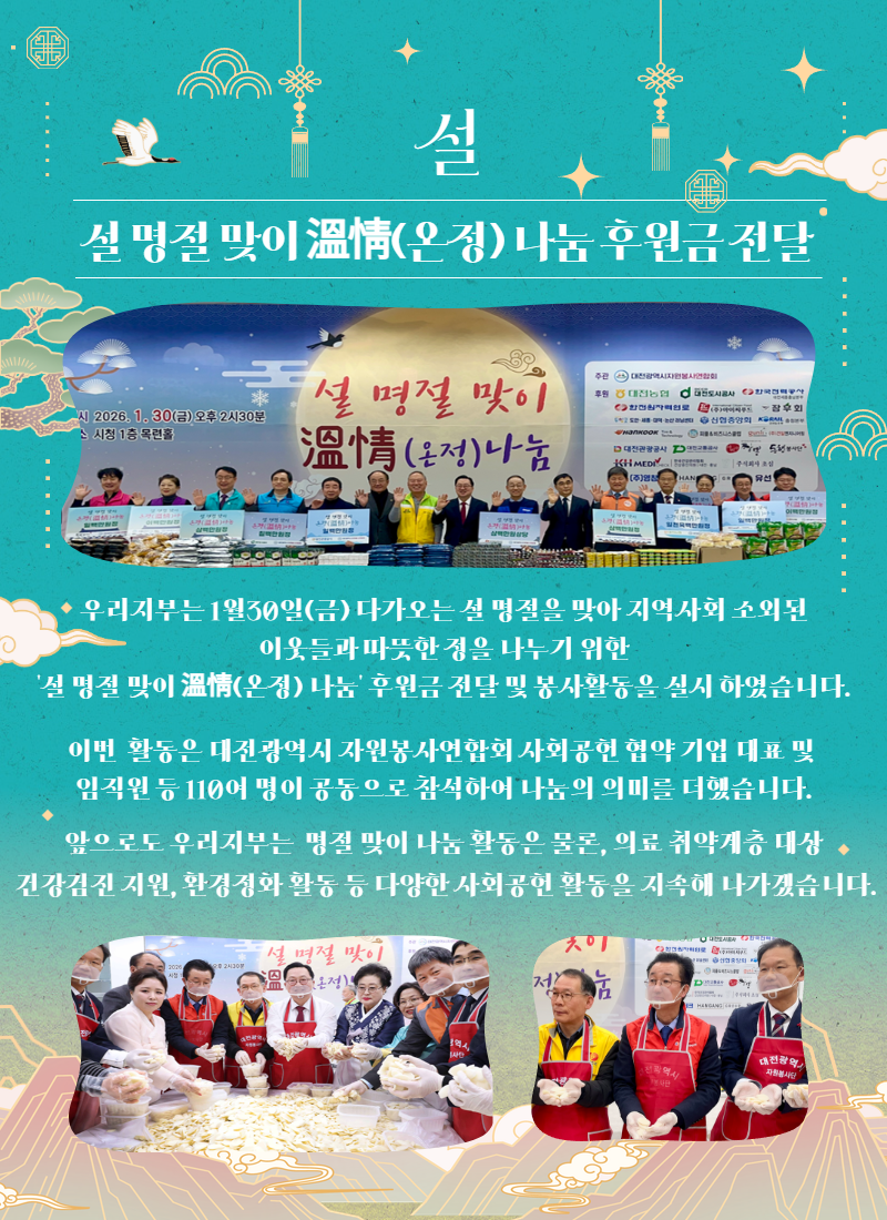 '설 명절 맞이 溫情(온정) 나눔' 후원금 전달 및 봉사활동 실시
